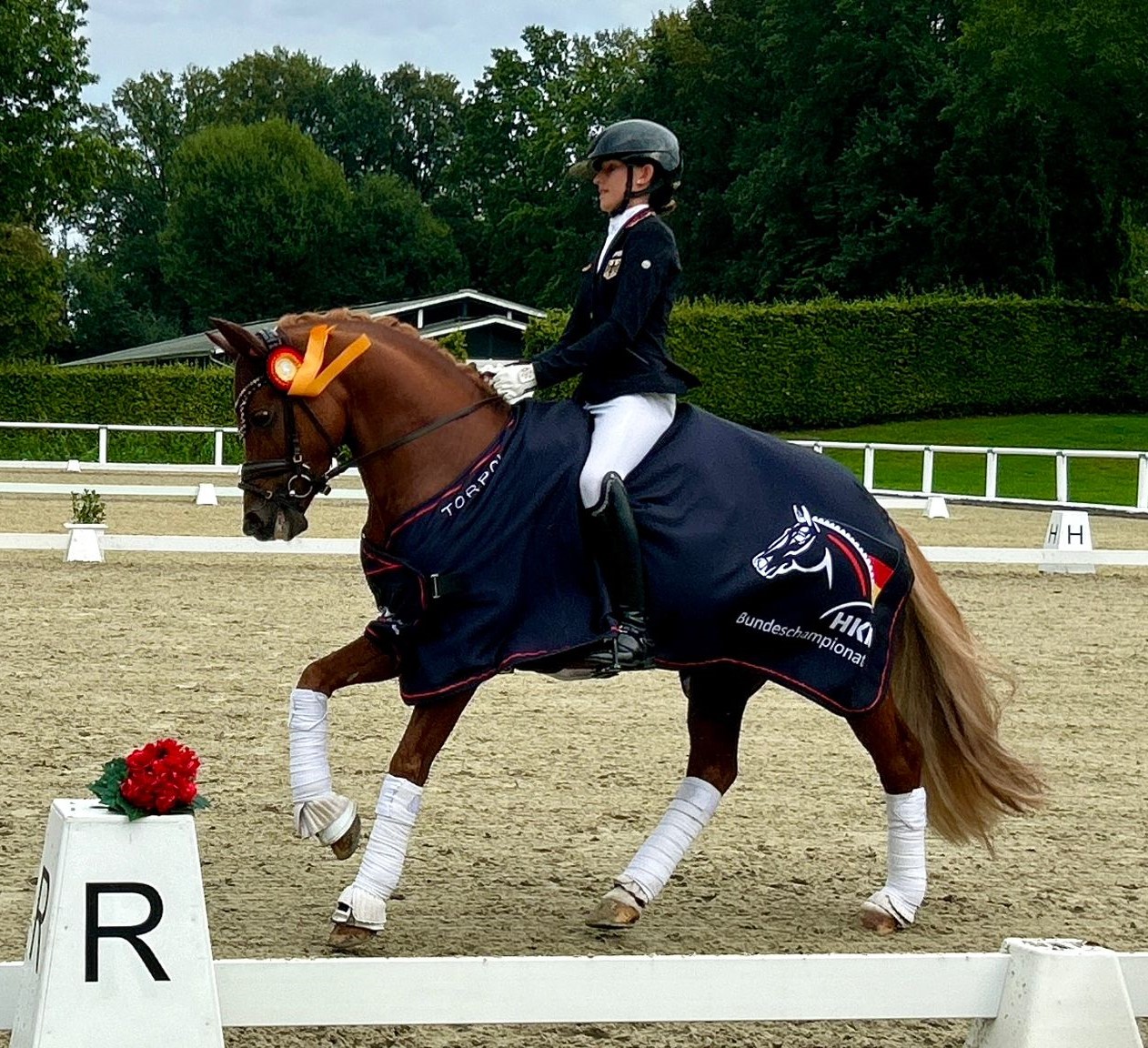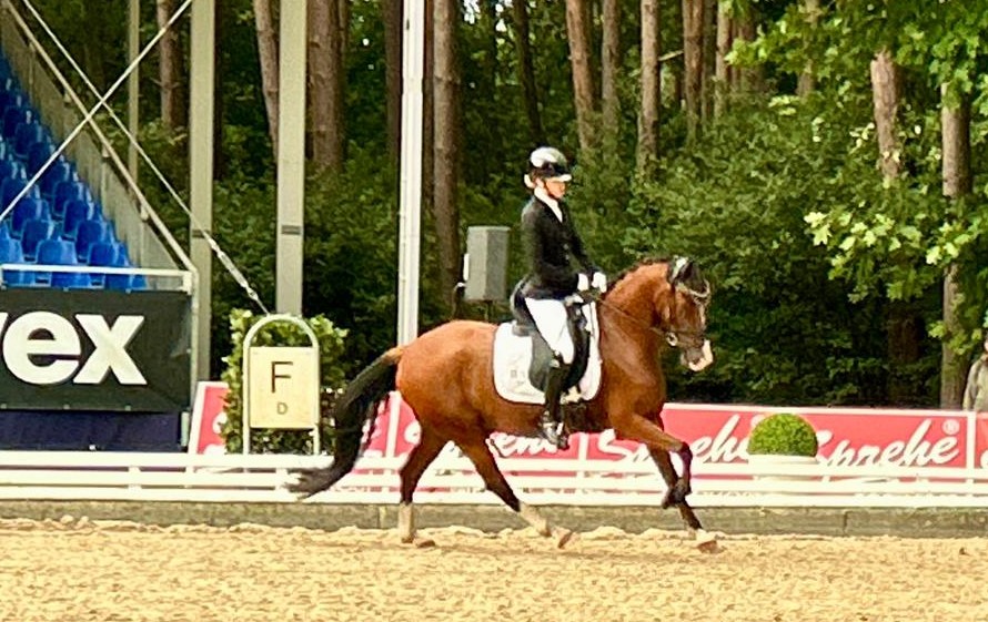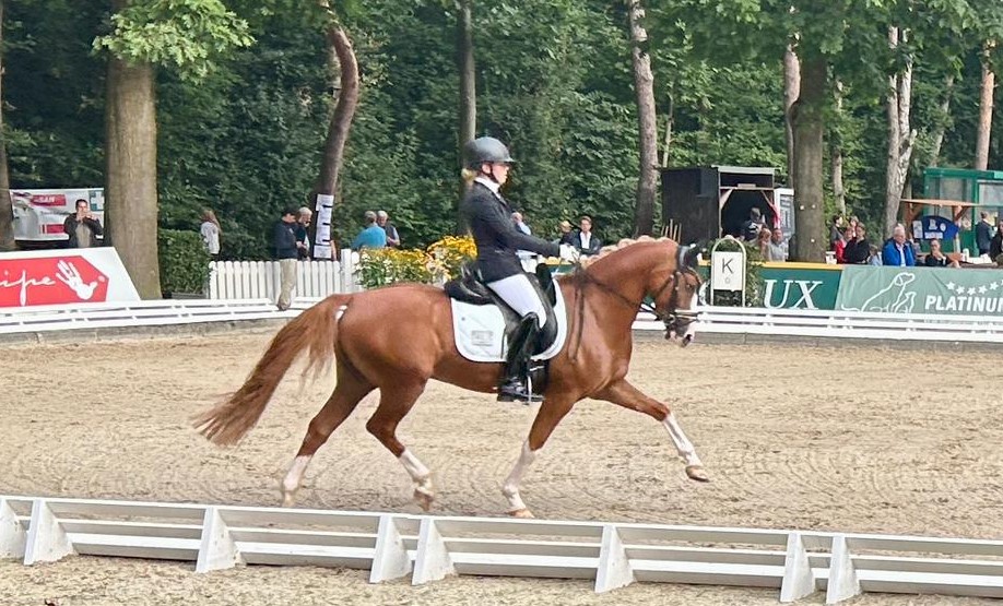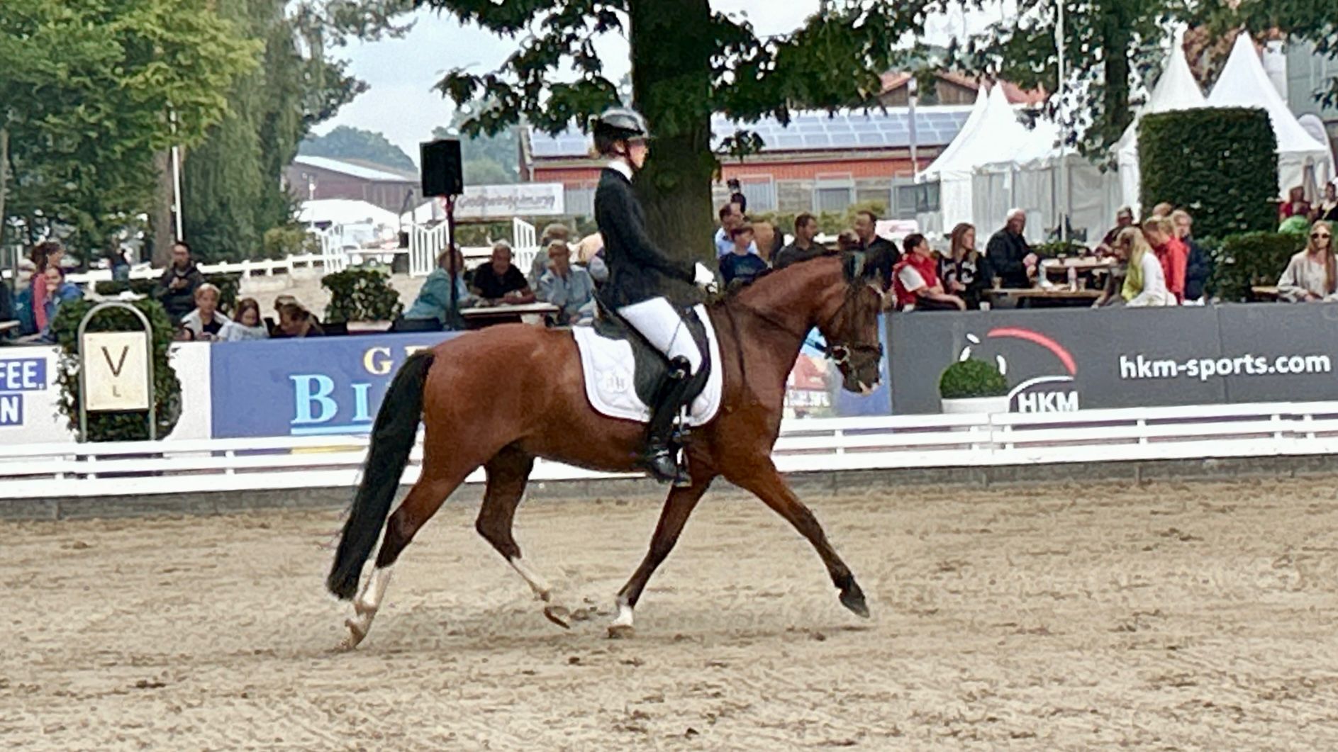 Ebenfalls in dieser Prüfung startete Deichkind RH v. Dallmayr K/Baccarat unter seiner Besitzerin Zoe Marie Hachmeier. Das Paar erhielt die Wertnote von 7,74 und damit Platz 7. Gezogen wurde der Fuchs von Lena Bammann, Schweringen.
