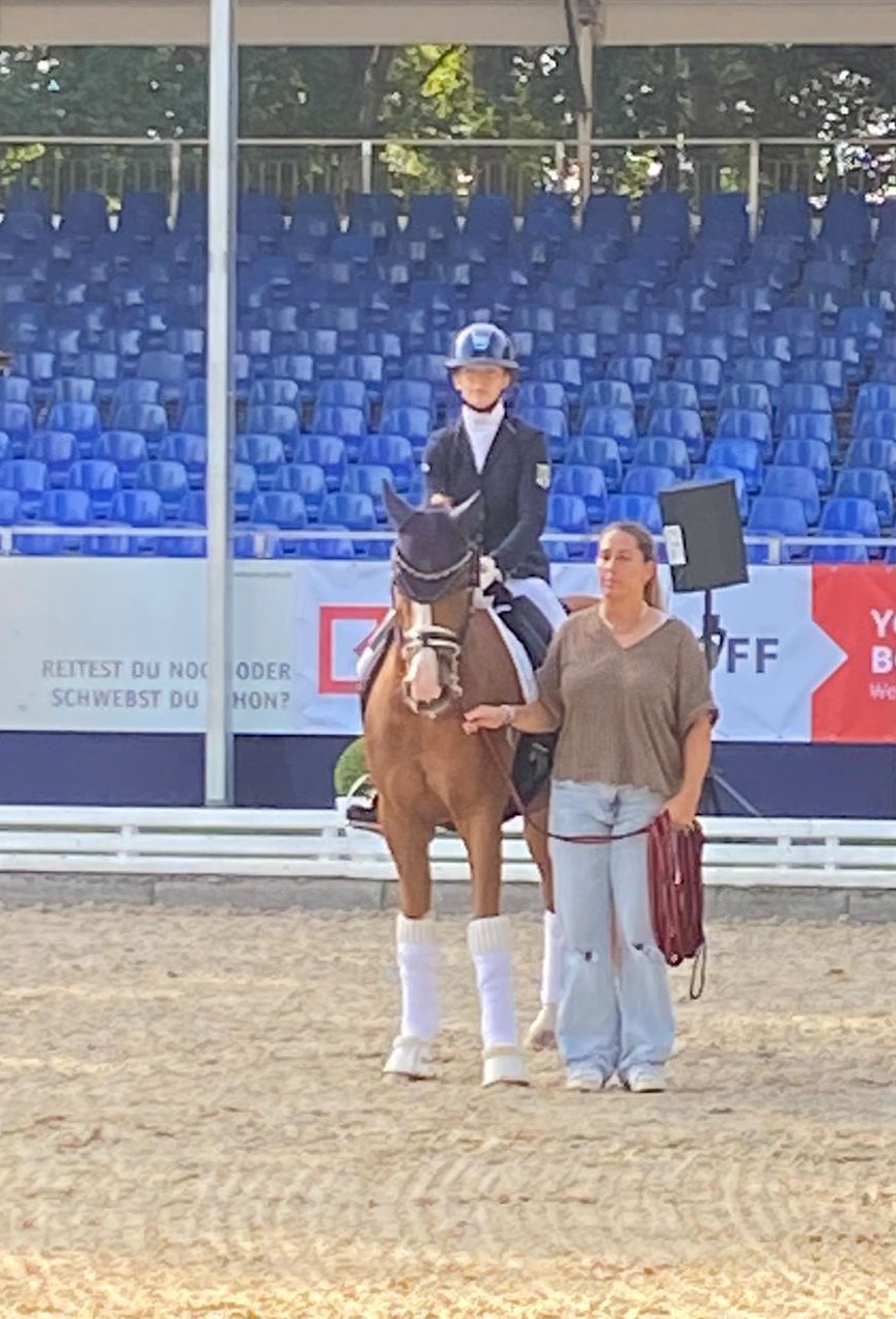 Nabucco HW v. FS Numero Uno/Don Davidoff heißt der Vizebundeschampion der 6-jährigen Dressurponys! Züchter und Besitzer Claus Wohlers, Frelsdorf. Mit seiner Reiterin Lilli von Helldorff konnte sich Nabucco HW mit einer 8,14 als Wertnote den 2. Platz sichern. Zudem erhielt das Paar den Tierschutzpreis für besonders faires, pferdegerechtes Reiten!