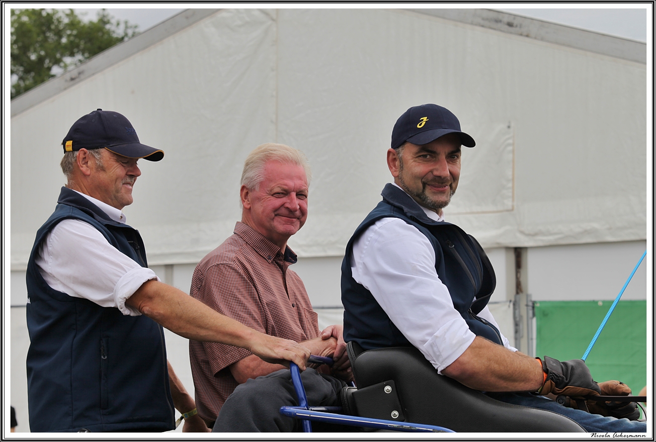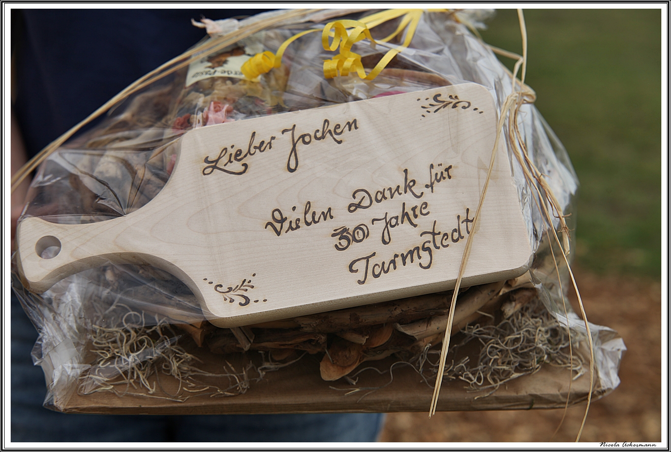 Als Überraschung wurde der Jubilar im Rahmen unserer Präsentation von Claus Luber mit seinem Zweispänner in den Show-Ring gefahren. Hier wurde er von Annette Slonka, Anika Bardenhagen, Franziska Bröcker-Müller und Frank Löwentat in Empfang genommen. Annette Slonka fasste Joachim Glienkes Werdegang in Tarmstedt in einer kleinen Laudatio zusammen und überreichte ein Präsent gemeinsam mit Anika Bardenhagen und Franziska Bröcker-Müller. Auch die Tarmstedter Ausstellung bedankte sich in Form eines Pokals, welcher vom Tierschauleiter Frank Löwentat überreicht wurde.