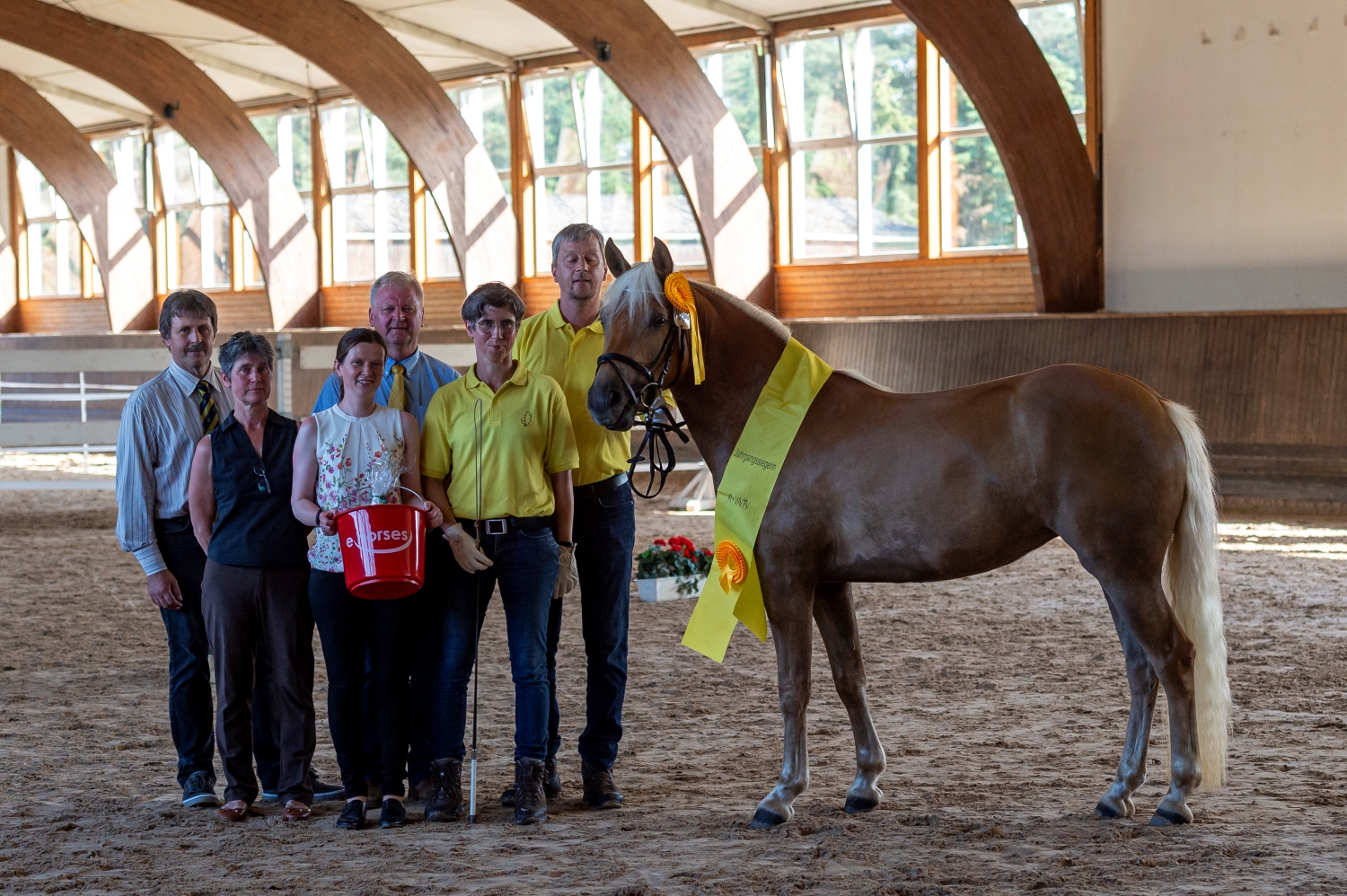Nicht nur die Reitpony-Stuten, sondern auch die Haflinger überzeugten im Freilaufen und bei der Präsentation an der Hand – und zwar auf ganzer Linie. „Solch eine Qualitätsdichte hatten wir noch nie“, freute sich Zuchtleiter Volker Hofmeister und lobte die Siegerin Maria (v. Strauss-Antares, Z. u. A.: Roland Müller) und die Reservesiegerin Omira S (v. Augartner-Nexstyle, Z. u. A.: Hendrik Stolze) sowie die Edelbluthaflinger Stute Fly (v. Maximus-Nakuri, Z. u. A.: ZG Allwörden) für ihren Rasse- und Geschlechtstyp sowie die Bewegungsqualität.