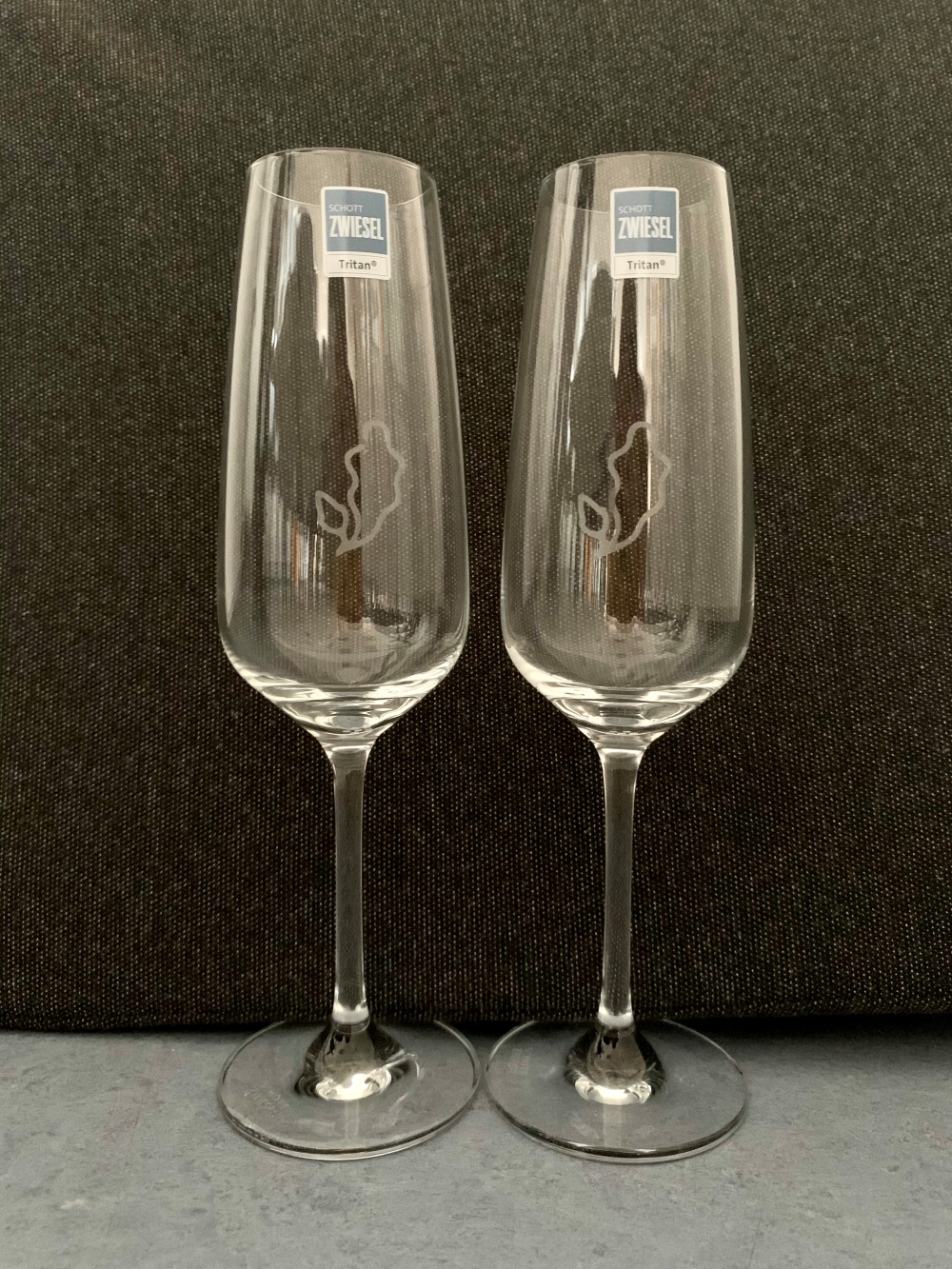 Sektglas Zwiesel mit eingraviertem Brandzeichen