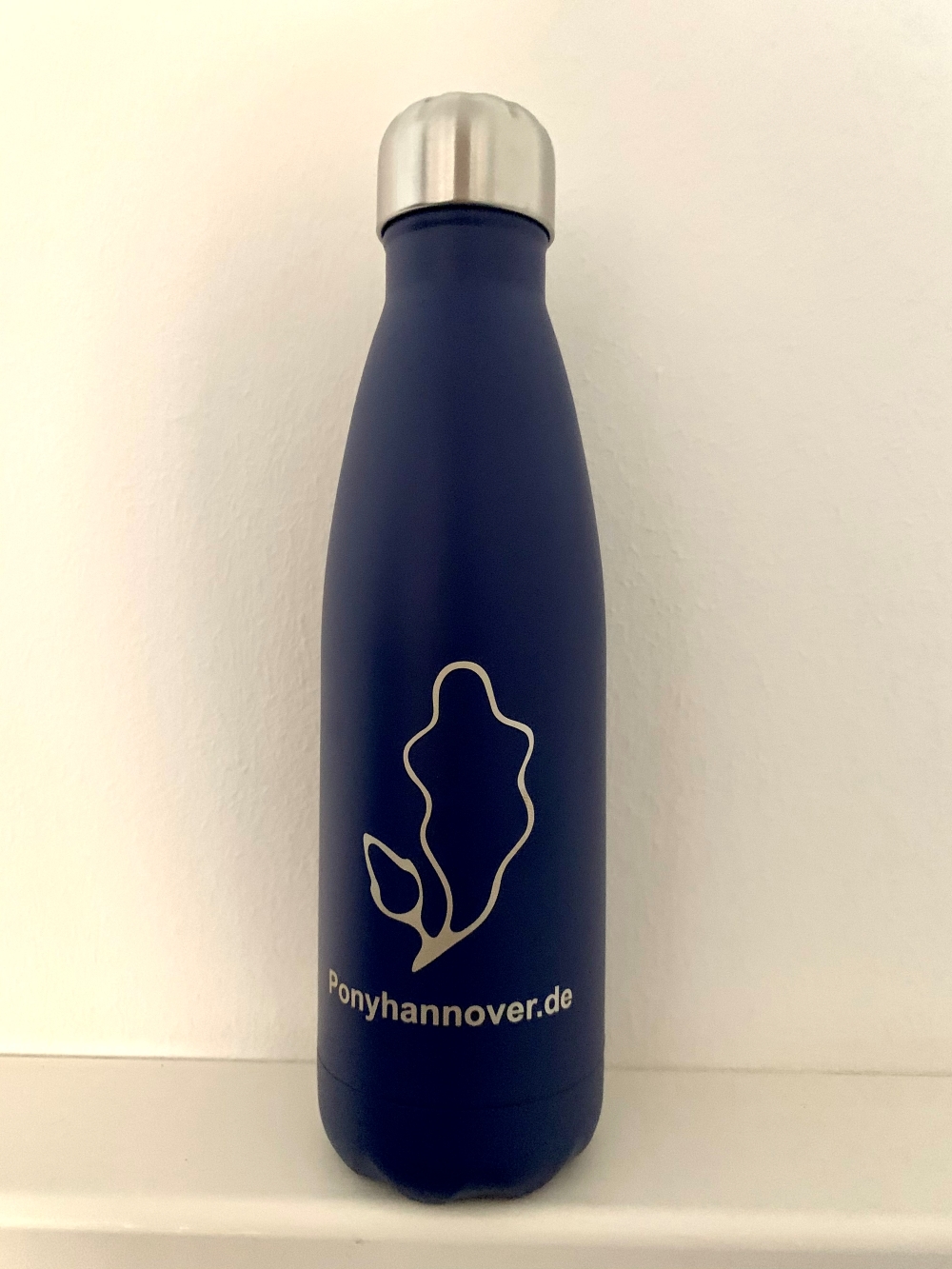 Sektgläser und Thermotrinkflaschen mit Ponybrandzeichen