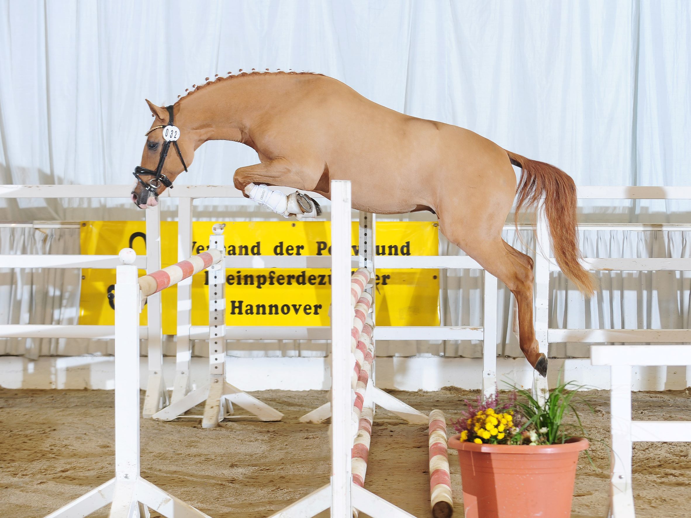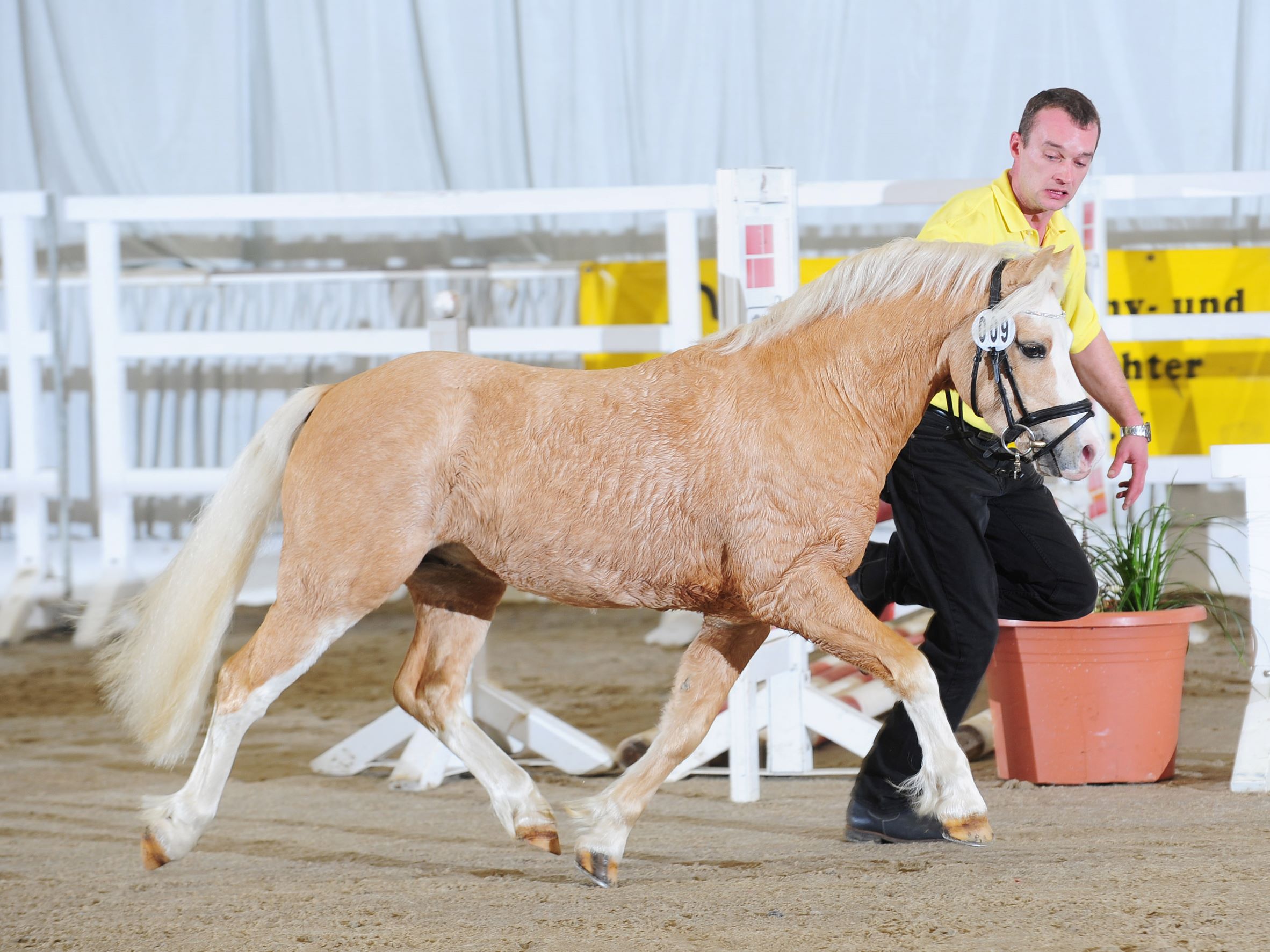 Die letzte Rasse, die nur im Freilaufen beurteilt wurde, war Welsh A. Als einziger Vertreter der Rasse wurde der in den Niederlanden gezogene Shamrocklake Harley Davidson v. Celuan Cariadog x Shamrocklake Royal Heart-Beat im Besitz der ZG Bücking und Hubler aus Butjadingen gekört und als Siegerhengst ernannt. Der Fuchsisabell punktete mit seinem harmonischen Seitenbild und zeigte seine Stärken vor allem im Galopp, der immer gleichmäßig mit genügend Knieaktion, ausbalanciert mit aktiver Hinterhand, durchgesprungen war. Die Besitzer freuten sich über die bronzene Plakette der Landwirtschaftskammer Niedersachsen und über die von der AGP gestellten Sektgläser des Ponyverbandes Hannover.