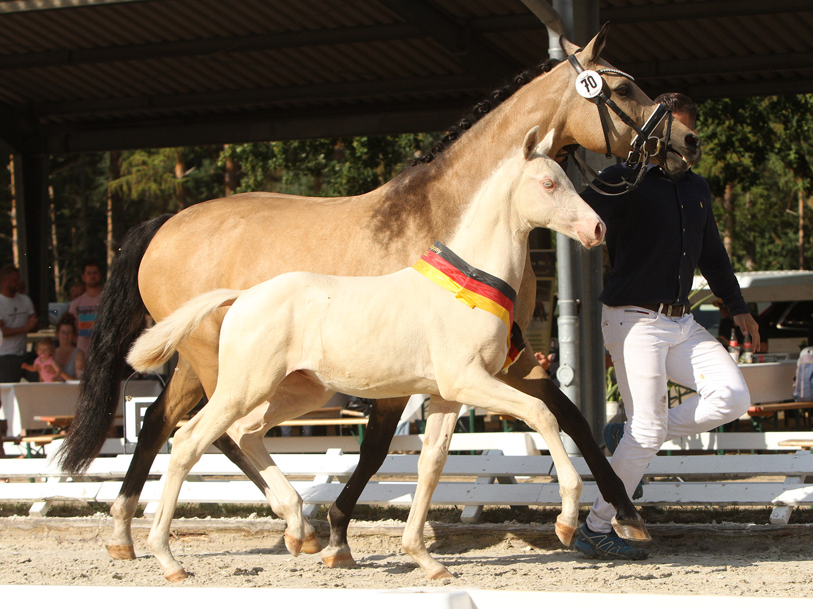 Hier setze sich ein Hengstfohlen an die Spitze, welches von Pressevertretern vor Ort mit den Worten „wie vom anderen Stern“ beschrieben wurde. „Steendieks Excelsior“ – ein Cremello mit einem begnadeten Bewegungsablauf, abstammend von Steendieks Exklusiv / FS Chambertin.