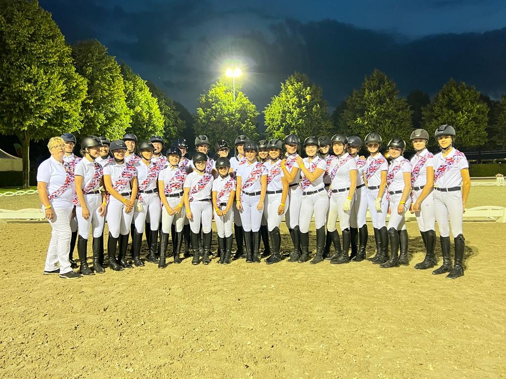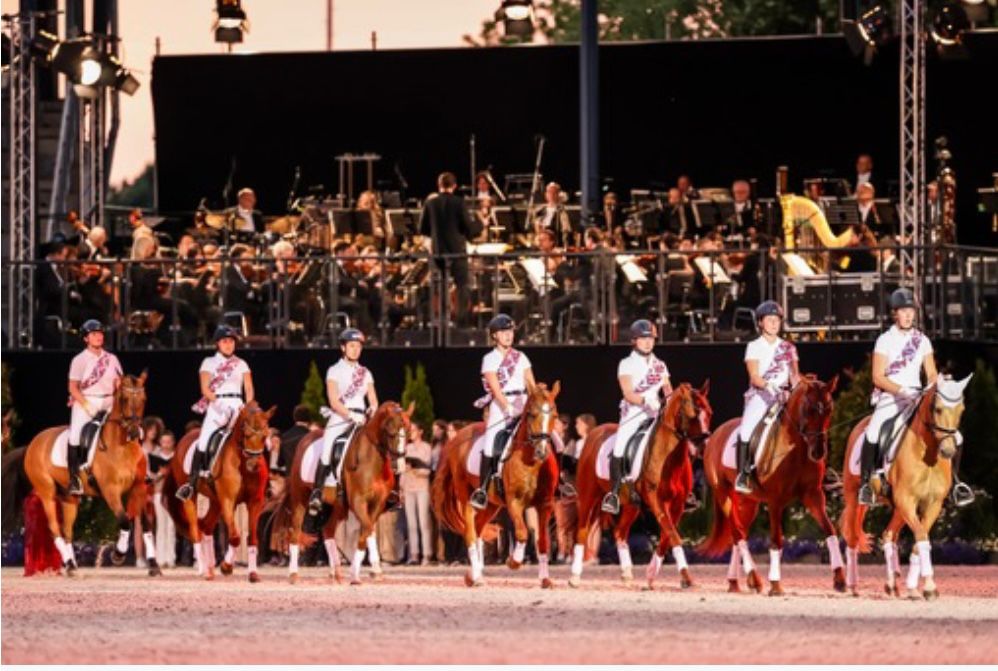 Mit 24 Reitponys gelang uns an diesen späten Abend ein wunderbarer Auftritt. Anlässlich des Jubiläumsschaunachmittages des Verbandes der Pony- und Kleinpferdezüchter Hannover in Verden hatten wir dann noch mehr Möglichkeit unsere noch sehr jungen Nachwuchsreiter an die große Bühne zu gewöhnen. Auch die Eröffnung des Pferdemarktes hat uns viel Spaß gemacht. Es sollte in diesem Jahr wirklich außergewöhnlich werden. Nach unserem Auftritt auf der Eröffnung des CHIO in Aachen im Jahr 2022, wurden wir Anfang des Jahres ein zweites Mal für das CHIO angefragt. Diesmal für insgesamt drei Tage, einer Generalprobe die uns schon ahnen ließ, was Gigantisches auf uns zu kommt. An zwei weiteren Abenden nahmen wir auf der begehrten Veranstaltung „Pferd und Sinfonie“ teil. Vor ausverkauftem Haus ritten wir in englischen Flaggen, zur Livemusik nach Songs der legendären Beatles. Begleitet wurde das Aachener Sinfonieorchester von einem Live Chor. Es bereitete unseren Reiterinnen und dem gesamten Team natürlich einen unbeschreiblichen Moment mit Gänsehaut, auf so einem Event in Aachen unser Können zu zeigen. Unsere Reitponys ließen sich auch von der Lichtershow bei unserem Auftritt nicht beeindrucken, beide Auftritte liefen fehlerfrei. Das waren anstrengende aber in erster Linie gigantische Erlebnisse.