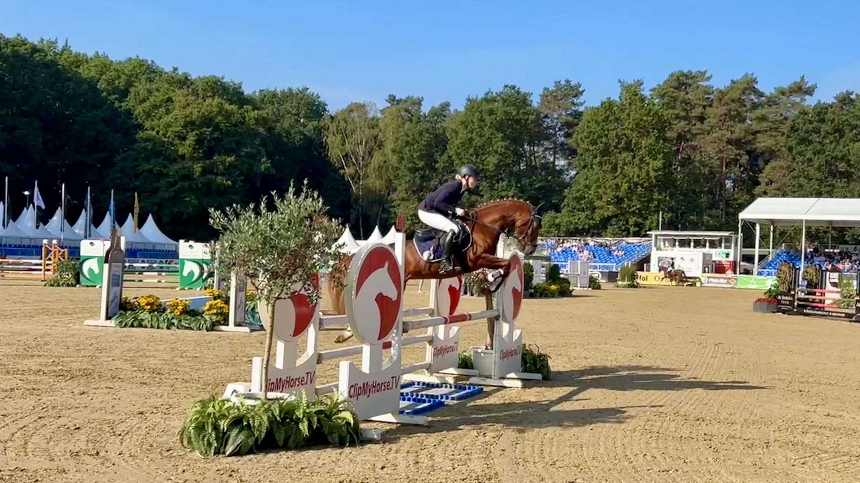 Nachdem sich Herzdieb JR am Freitag für das Finale der 5- und 6-jährigen Vielseitigkeitsponys qualifiziert hatte, zeigte er sich auch am Samstag in guter Form. Der von Herzkönig/Pikachu abstammende Hengst aus der Zucht und im Besitz von Jens Reents, Langenhagen, präsentierte sich unter Belissa Müller-Winterscheid mit konstanten Leistungen. In der Springponyprüfung Kl. A** erreichte er mit der Wertnote 7,5 den 6. Platz, in der Dressurponyprüfung Kl. A mit der Wertnote 7,6 den 4. Platz. Damit rangiert er vor der morgigen Finalentscheidung auf dem bronzenen dritten Rang.