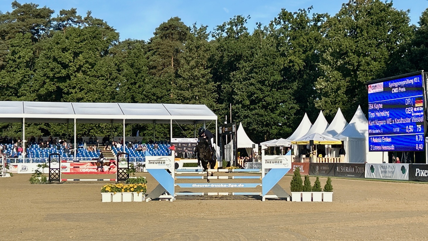 Am Sonntag platzierte sich im Finale der 5-jährigen Springponys in der Springponyprüfung Kl.L Kayne 4 v. Kent Nagano WE / Kooihuster Wessel unter Tippi Heineking mit der Wertnote 7,2 auf dem 8. Platz. Der Hengst stammt aus der Zucht von Hartmut Zimmermann und steht im Besitz von Marcus Voss.