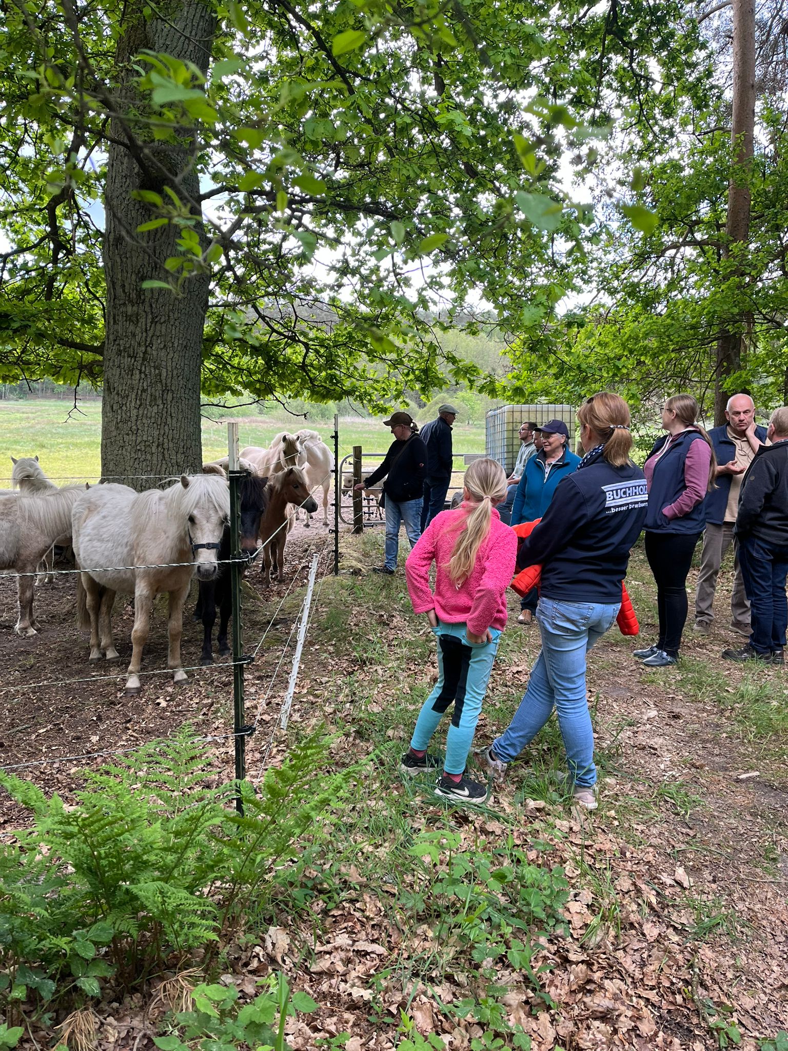 Es folgte eine Besichtigung der verschiedenen Ponygruppen mit einem ausgiebigen Spaziergang. Dabei wurde die ganzjährige Weidehaltung mit entsprechender Zäunung vorgestellt.