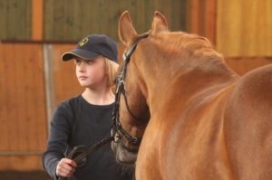 Besonders viel Spaß hatten die beiden Ausbilder mit den Kleinsten, die sehr viel Einsatz zeigten und mit Feuereifer bei der Sache waren. Sie bildeten in diesem Jahr mit Abstand die größte Gruppe. Das lässt doch für die Zukunft der Jungzüchterarbeit hoffen! Mitarbeiter Steffen Hermann, der sein Handwerk in Moritzburg erlernte, übernahm die Unterweisung im Herausbringen von Pferden zu einer Schau. Hier waren dann die älteren besonders gefragt, eine Warmblutstute von Huf bis zur Schweifspitze top zu stylen.